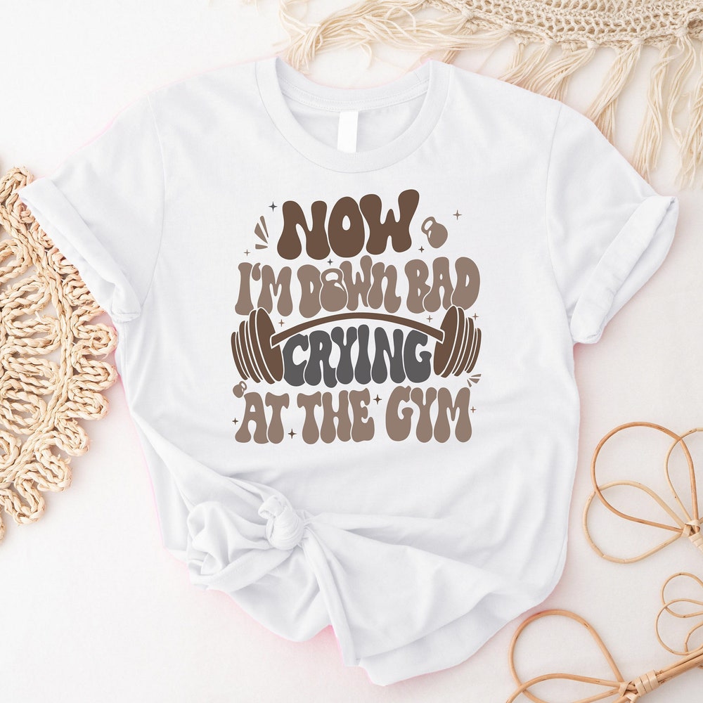 Now I’m Down Bad Crying At The Gym T-Shirt, Funny Gym Weightlifting Shirt, Hard Workout Fitness Tee, Bodybuilding Shirt, Gift For Gym Lover