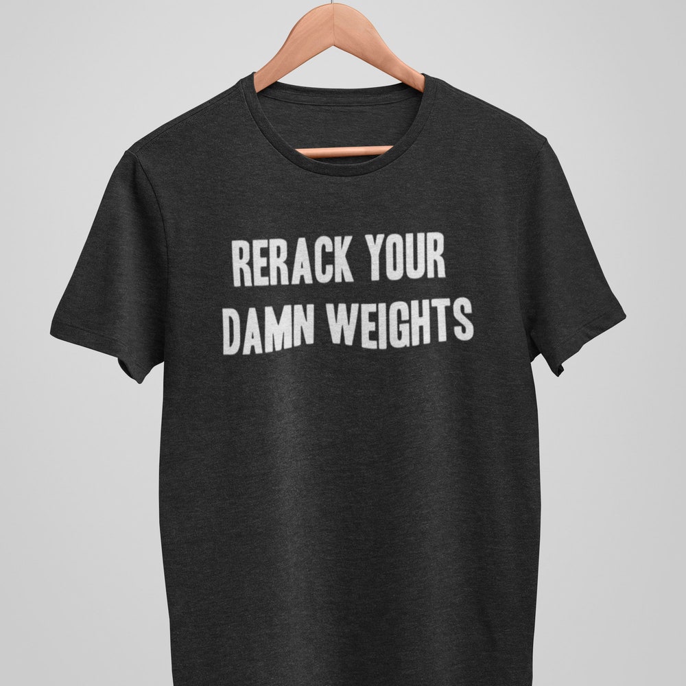 Rerack Your D*mn Weights Men Funny Gym Shirt Triblend Workout Casual