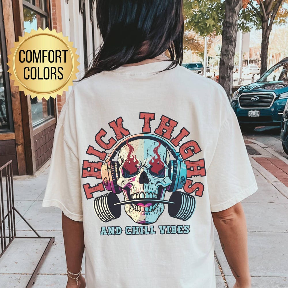 Thick Thighs and Chill Vibes Shirt, Comfort Colors, Gym Pump Cover, Weightlifter Gifts, Trendy Fitness Gift for Gymrat, Muscle Mommy Tshirt
