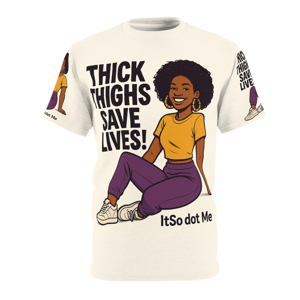 Thick Thighs Save Lives T-Shirt (AOP) #2 – Body Positivity Tee, Funny Gym Shirt, Plus Size Graphic Tee, Fitness Apparel, Workout Top