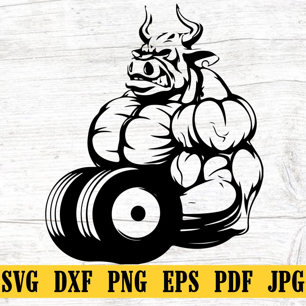 Bull Body Builder svg | Body Physique Instructor Cut File | Fitness Coach T-shirt png | Gym Monogram Stencil | Big Muscle Man Clipart DXF