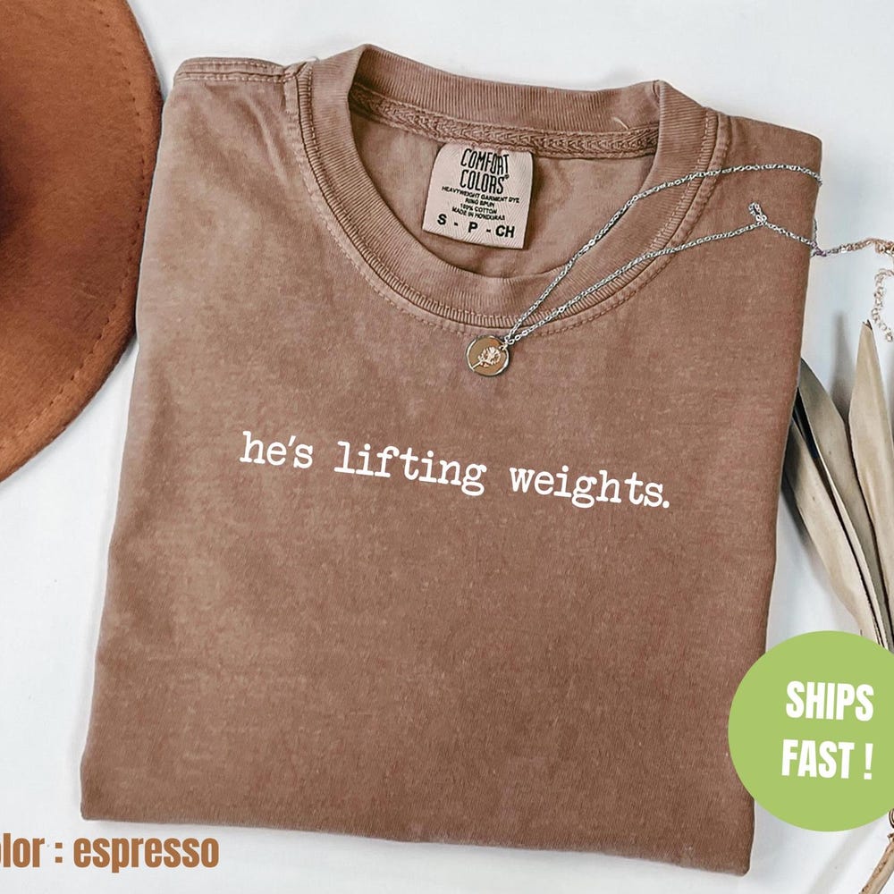 Comfort Colors® He’s Lifting Weights Shirt, Weightlifting Shirt, Workout Shirt, Fitness Gift for Mom, Gym Shirt for Mom, Body Building Shirt