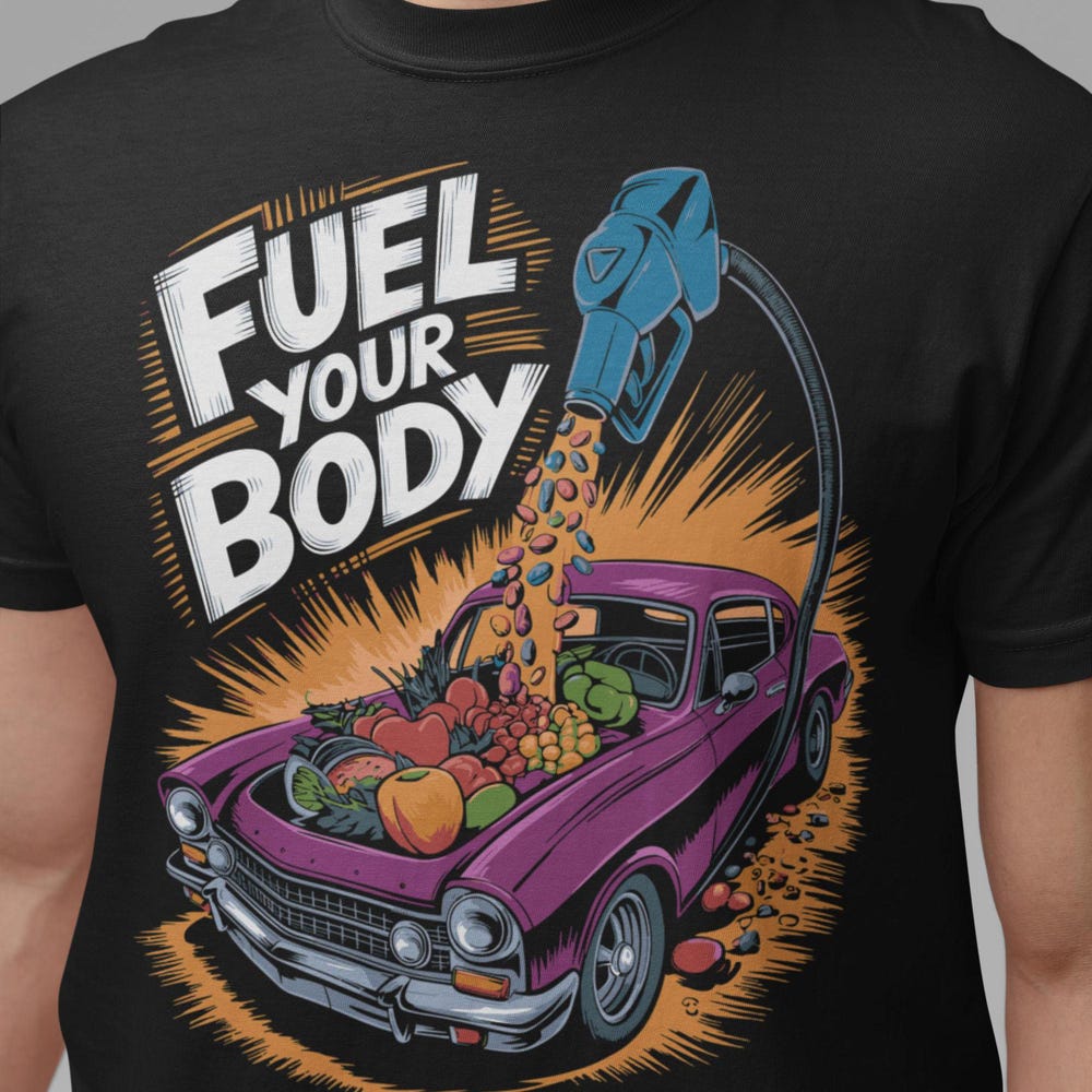 Fuel Your Body Unisex Garment-Dyed Heavyweight T-Shirt | Vintage Car Healthy Fuel Graphic Tee | Organic Food Fitness Shirt