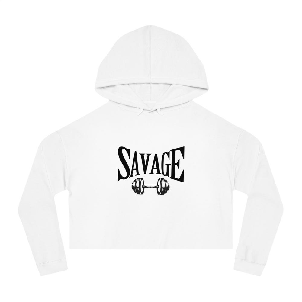 Savage Women’s Cropped Hooded Sweatshirt, Fitness Apparel, Workout Top, Casual Wear, Gift for Gym Lovers