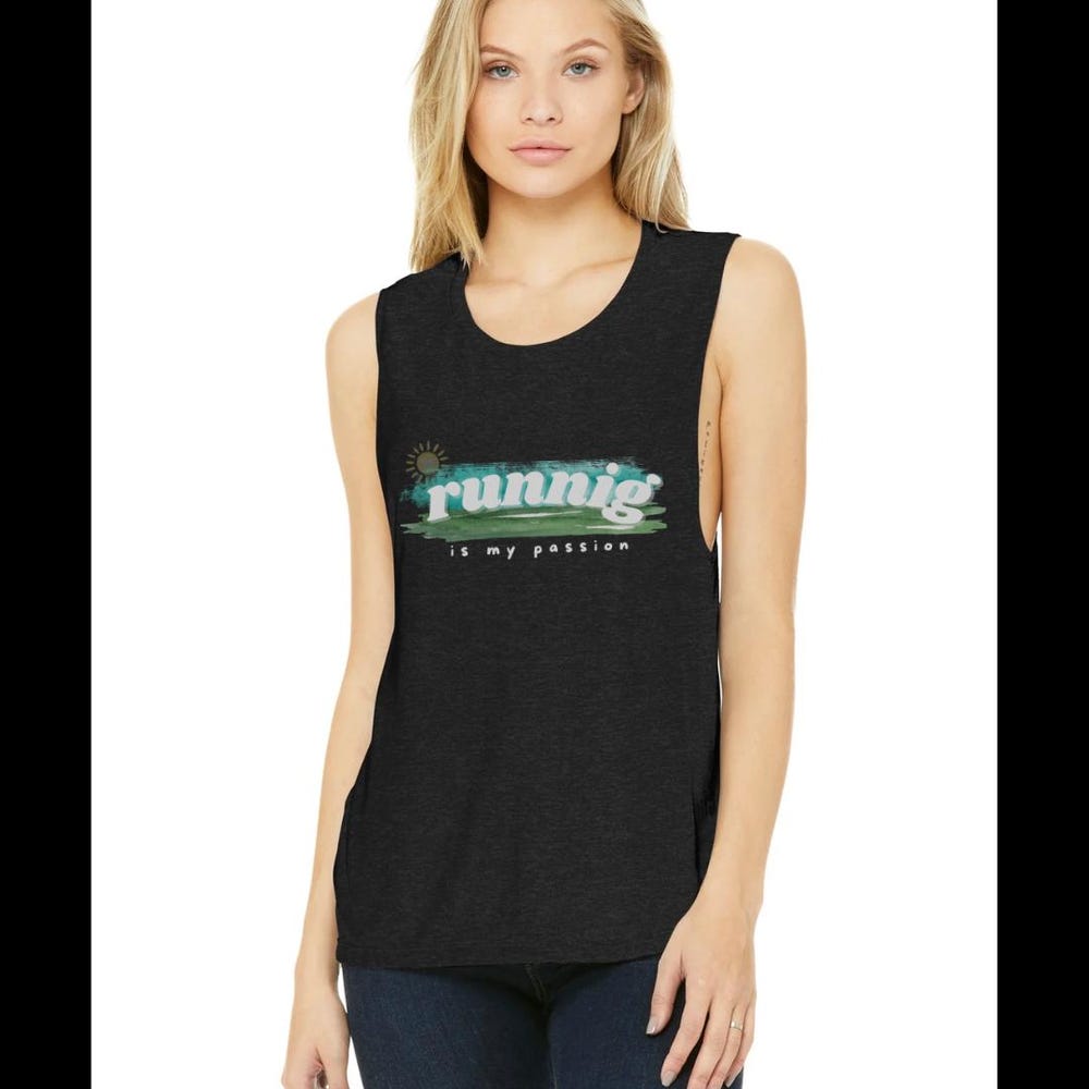 Running is My Passion Women’s Flowy Scoop Muscle Tank, Fitness Tank Top, Workout Gear, Gym Apparel, Active Wear, Gift for Runners