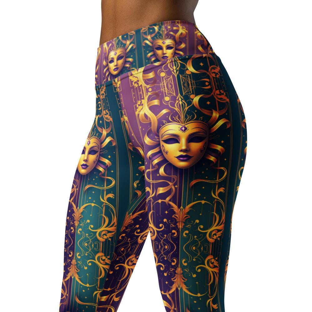 Gold Mardi Gras Leggings Theatrical Yoga Pants High Waist Party Trousers Gym Fitness Athleisure Stretchy Women’s Bold Teal Purple Britches