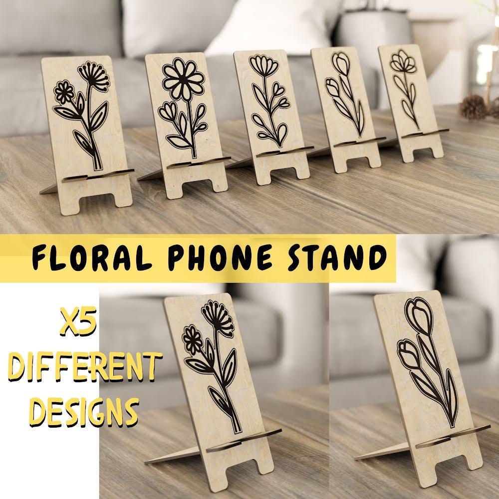 Floral Phone Holder SVG, Floral Phone Stand SVG, Smartphone Holder Laser, Wooden Phone Holder Cutting Design, Flower Stand Laser Cut File