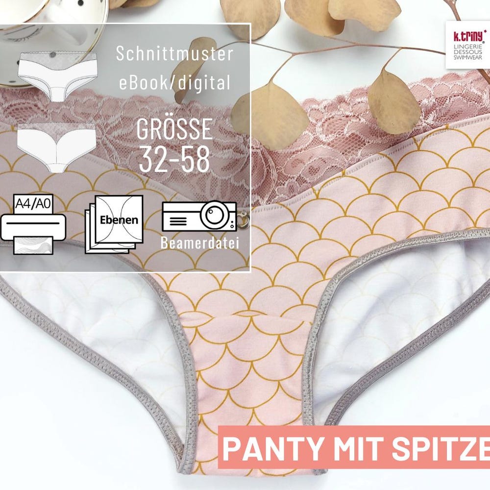Slip with lace pattern | eBook for panty | Instructions for women’s underwear slip/panty shape size 32-58 (digital/German)