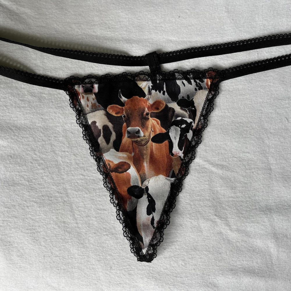 Womens COW Barn Farm Ranch Animal String Thong Lingerie Underwear