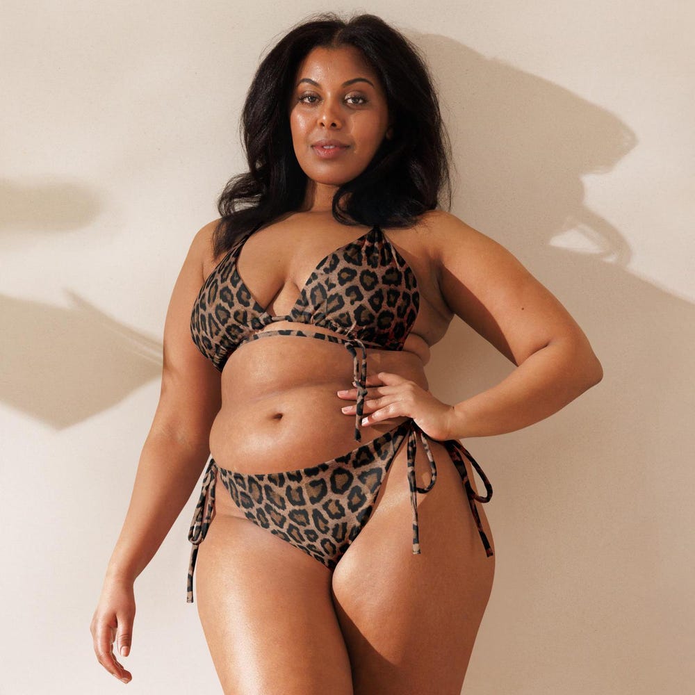Cheetah Print String Bikini – Made with Recycled Polyester – Up to 6XL