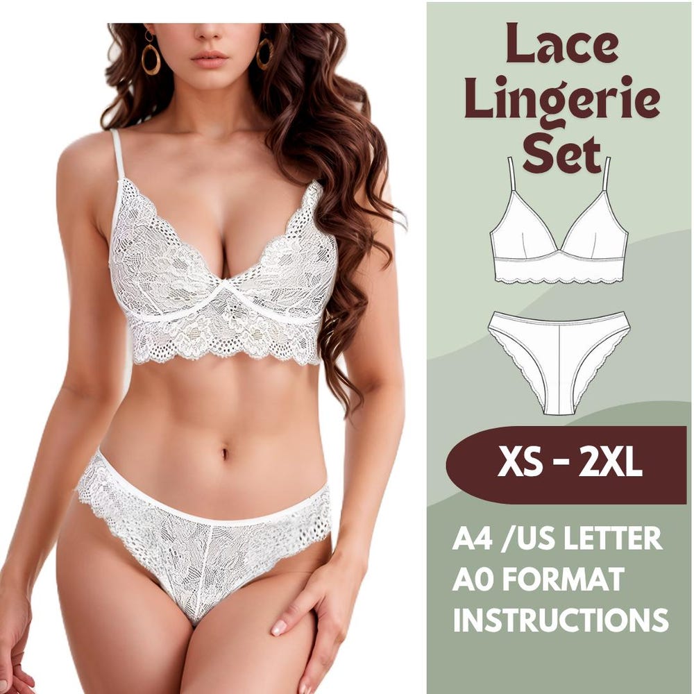 Lingerie Sewing Pattern – Bralette and Panty Set PDF – Lace Underwear Sewing Pattern for Women – Sizes XS-4XL – A4, Letter, A0 Format