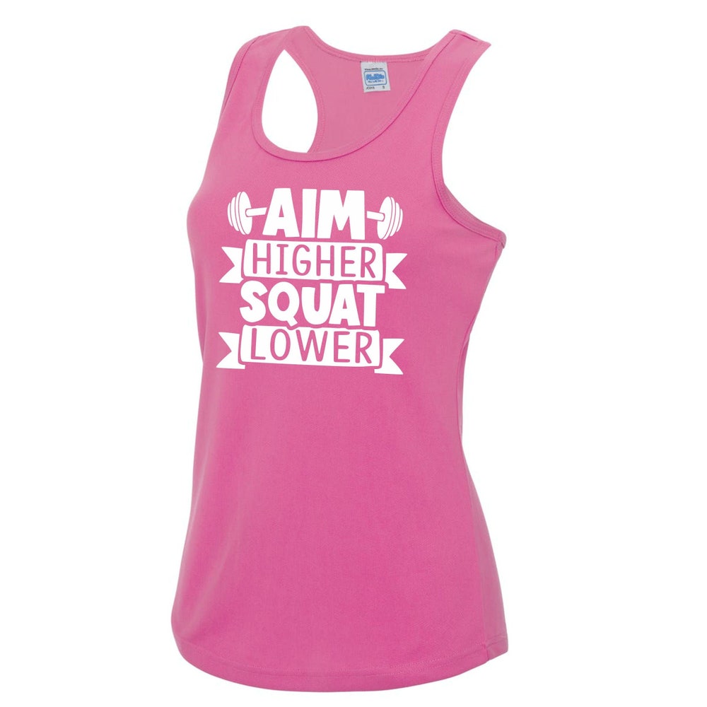 Womens Gym Polyester Tank Top Workout Top Funny Gym Vest Ladies Gym Vest Weightlifting Shirt Fitness Vest Aim Higher Squat Lower